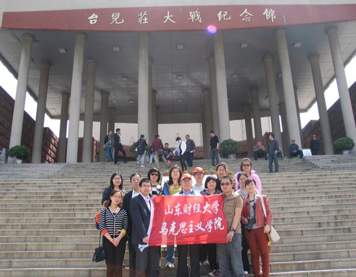 2013骞�4鏈�13锛�14鏃ワ紝灞变笢璐㈢粡澶у椹厠鎬濅富涔夊闄婁腑鍥借繎鐜颁唬鍙茬翰瑕併嬫暀鐮斿鍜屽厷鏀儴鍦ㄥ厷鎬绘敮涔﹁瀛欐椽鏁忕殑甯﹂涓嬶紝鍙傝鑰冨療浜嗗彴鍎垮簞澶ф垬绾康棣嗗拰鍙板効搴勫彜鍩庛傚彴鍎垮簞澶ф垬鏄叏闈㈡姉鎴樼垎鍙戜互鏉ヤ腑鍥藉浗姘戝厷鍐涢槦鍙栧緱鐨勬渶澶х殑涓娆¤儨鍒╋紝姝肩伃鏃ュ啗1涓囦綑浜猴紝娌夐噸鎵撳嚮浜嗘棩鍐涚殑鍑剁寷鍔垮ご銆傛暀甯堜滑閫氳繃瑙傜湅鍙板効搴勫ぇ鎴樼殑鍘嗗彶閬楄抗銆佹暟鎹佸浘鐗囧強褰辫璧勬枡绛夛紝濡傝韩涓村叾鐠勶紝娣卞彈鎰熸煋鍜屾暀鑲诧紝鍚屾椂锛屾暀甯堜滑杩樺弬瑙備簡闆嗏滆繍娌虫枃鍖栤濅笌鈥滃ぇ鎴樻枃鍖栤濅簬涓浣撶殑鍙板効搴勫彜鍩庯紝鎰熷彈鍒颁簡鍙ゆ枃鍖栫殑浜烘枃榄呭姏銆傝繖娆℃暀瀛﹀疄璺垫椿鍔紝涓嶄粎鍙楀埌浜嗕竴娆℃繁鍒荤殑鐖卞浗涓讳箟鏁欒偛锛屼篃涓鸿鍫傛暀瀛︽彁渚涗簡涓板瘜鐨勭礌鏉愩�