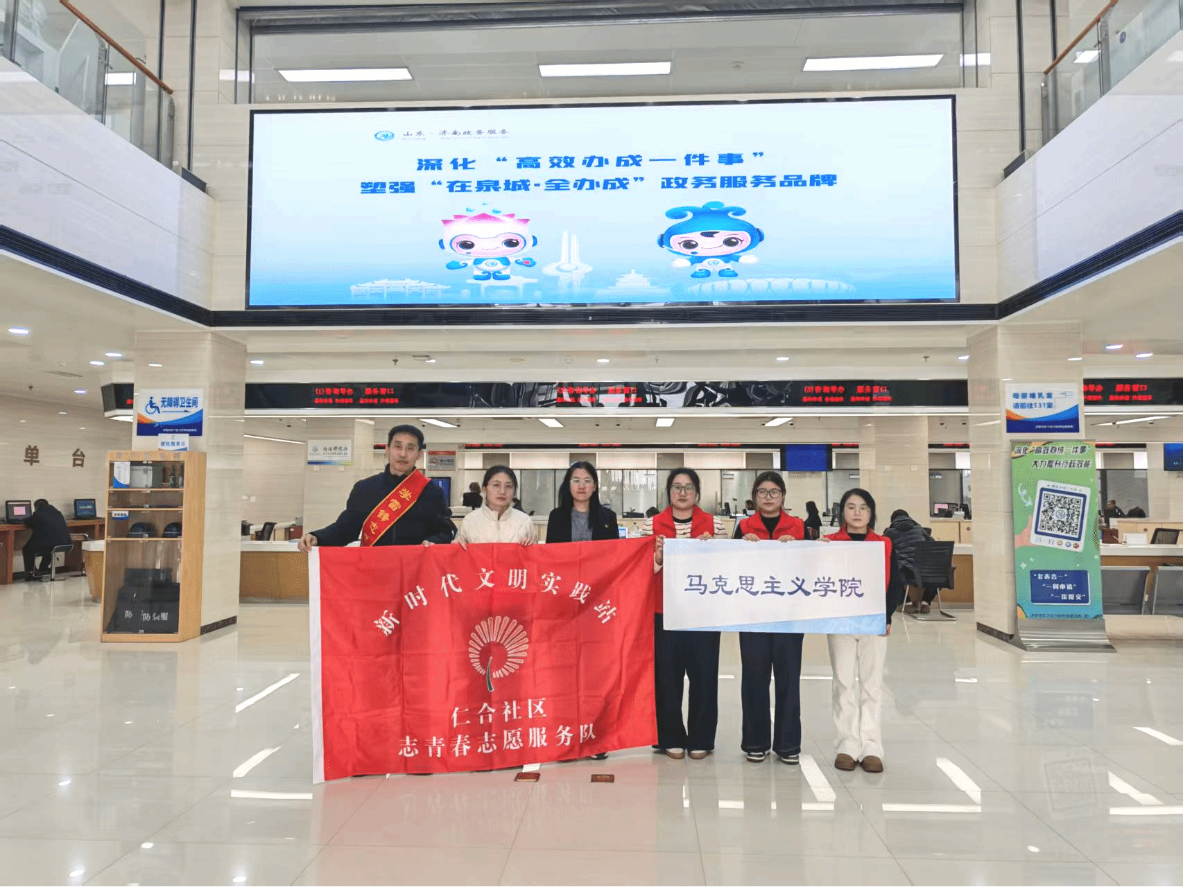 为深入弘扬雷锋精神,引导青年学子践行新时代大学生的责任与担当,在学雷锋主题月期间,马克思主义学院于3月16日至20日,组织志愿者赴济南历下区政务服务中心,开展“青春志愿行,温暖雷锋月”志愿服务活动,以实际行动传递温暖,助力政务服务提质增效。