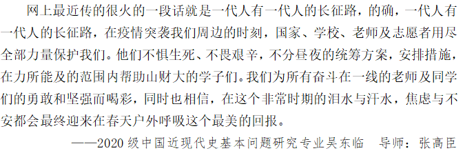 鍚屽浠埄鐢ㄧ綉璇剧殑绌轰綑鏃堕棿鎷嶆憚鎴樷滅柅鈥濊棰戯紝甯屾湜鐢ㄨ棰戜紶閫掑姏閲忥紝琛ㄨ揪閾块數鐨勬姉鐤織姘斻傗滄垜浠殑鏄ュぉ鈥濃斺斿北璐㈠ぇ甯堢敓鍚屽績鎴樷滅柅鈥濊棰戯紝姹囪仛鍚屽浠姉鍑荤柅鎯呯殑鍐冲績锛屼负鎶楃柅鍔犳补鐨勭儹鎯咃紝渚濇墭瑙嗛浼犻掑ず鍙栫柅鎯呴槻鎺ф枟浜夎儨鍒╃殑闈掓槬鍔涢噺銆傝繖鍚屾椂涔熸槸浠ュ彟涓绉嶆柟寮忓彿鍙悓瀛︿滑绉瀬鍗忓姪鎴戞牎鐤儏闃叉姢宸ヤ綔锛屼互鑷繁鐨勬柟寮忎负鐤儏鏀诲潥鎴樺鐚竴浠介潚鏄ヨ摤鍕冧箣鍔涳紒