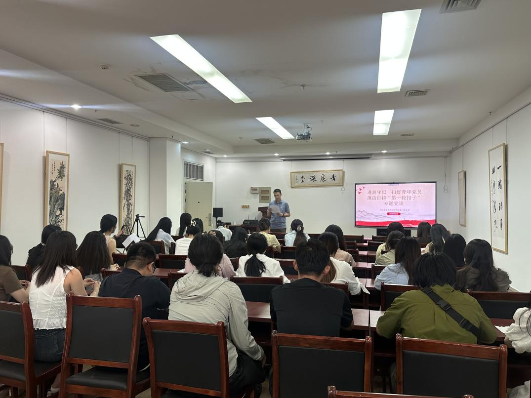 6月3日,威尼斯人娱乐城 研究生第一、第二党支部在图书馆“青廉课堂”活动室开展“扣好人生第一粒扣子”专题党课,引导筑牢毕业生党员廉洁自律思想根基。会议由研究生党员毕逸飞同志主持,全体研究生党员参加。
