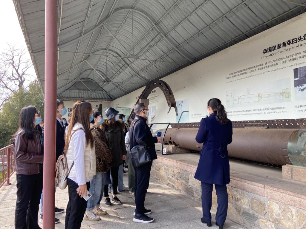 师生乘坐观光车抵达甲午战争陈列馆,在这里见证了北洋海军的成军和覆没,见证了中日甲午战争的悲壮和创痛,见证了威海卫被英国强租 32 年的国耻和民辱。该馆分为“战前的中国和日本”“日本打开战争魔盒”“民族屈辱与抗争”“殇思厅”四个部分,通过实地参观、现场讲解和互动交流,触发了师生的悲愤和警醒。