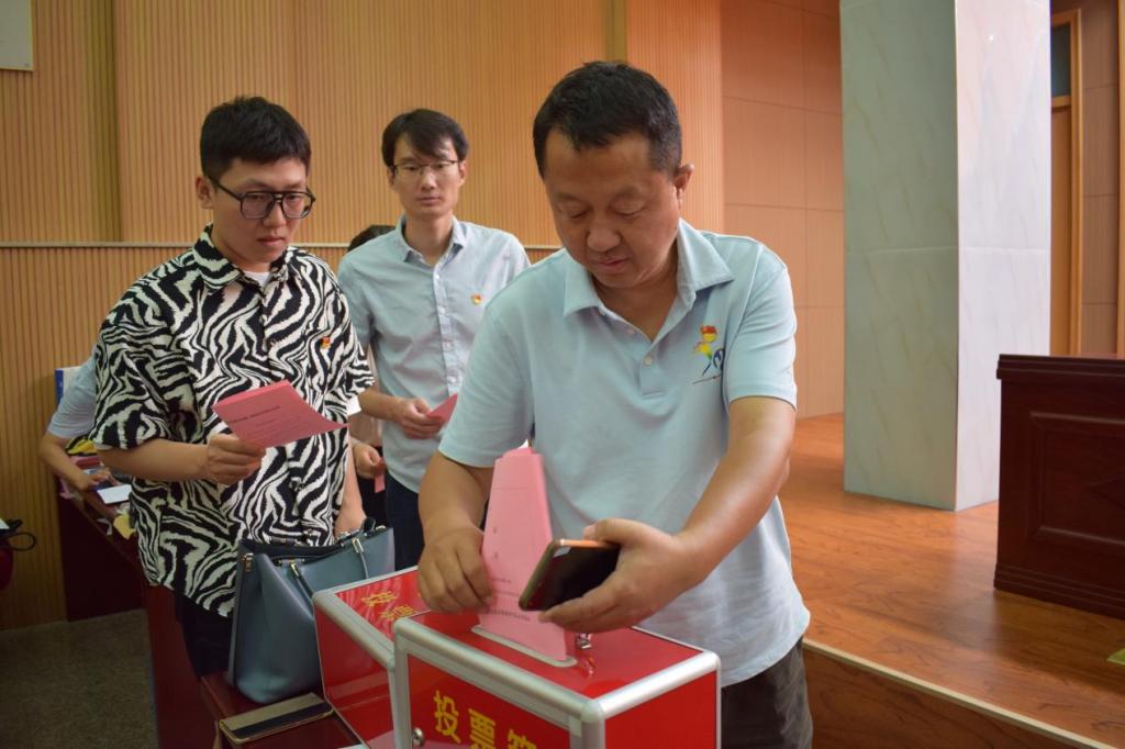 大会一致通过《中国共产党威尼斯人娱乐城 党员大会选举办法》,表决通过监票人名单,宣读计票人名单。按照《选举办法》,本次换届选举以无记名投票方式,实行差额选举。新一届委员选举阶段,党员同志依次走到票箱前,投下了庄严一票。大会最终选举王昊天、王敏、石伟、徐莹、侯继迎(按姓氏笔画为序)5名同志为威尼斯人娱乐城 新一届党委委员。