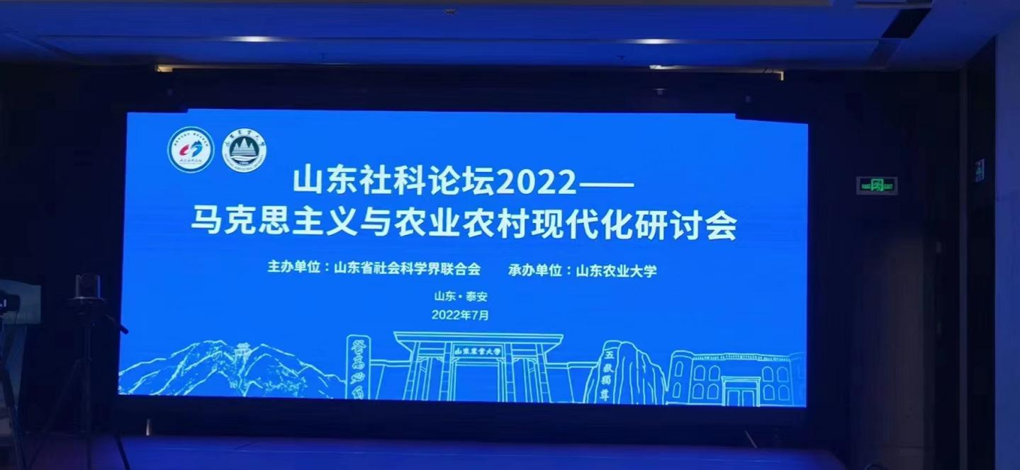 7月14日至15日,山东社科论坛2022——马克思主义与农业农村现代化研讨会在泰安举行,论坛由山东省社会科学界联合会主办、山东农业大学承办,以线上与线下相结合的方式举行。