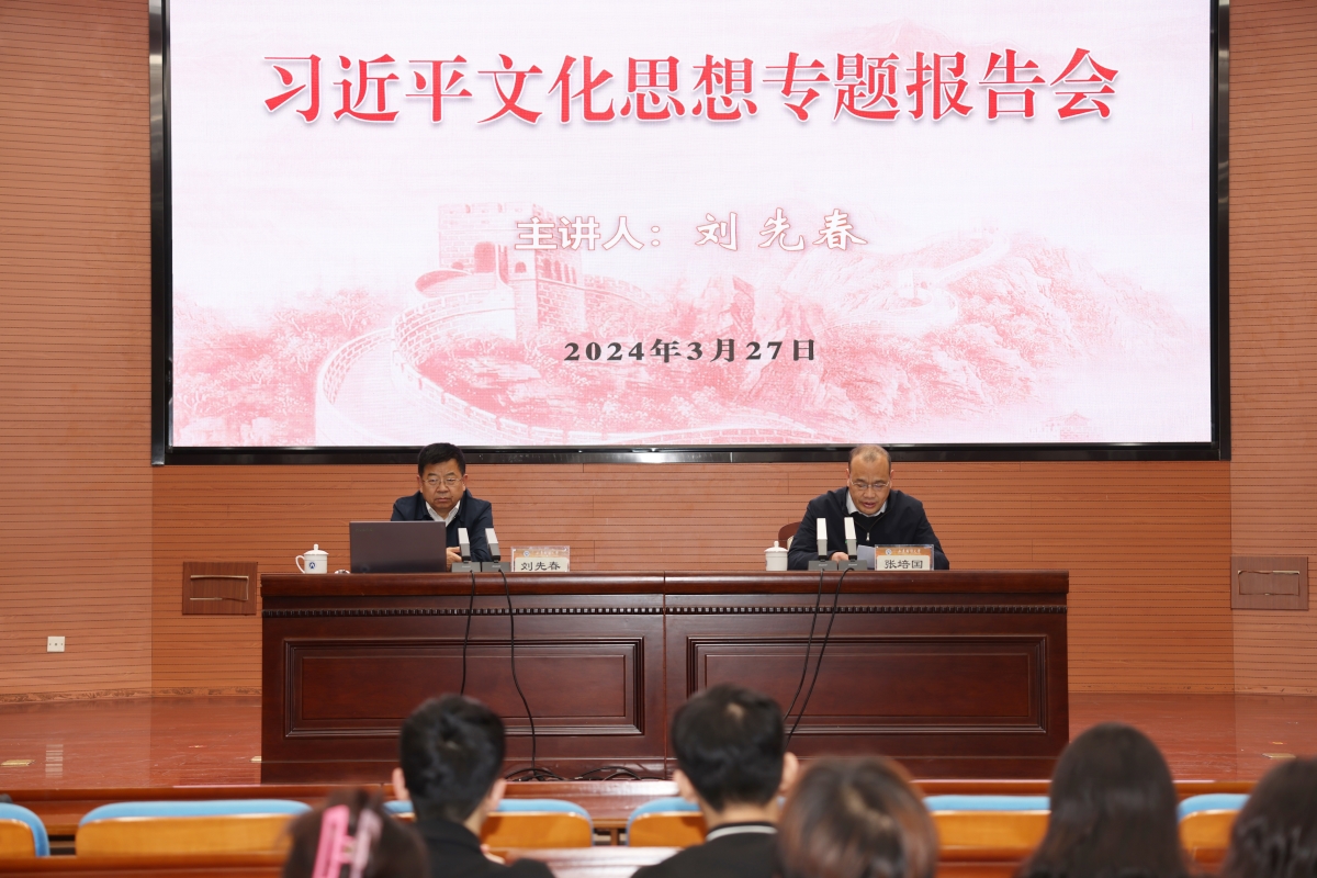 下午,刘先春为我校师生作题为《深入学习贯彻习近平文化思想》的学术报告。校党委副书记张培国主持了报告会。