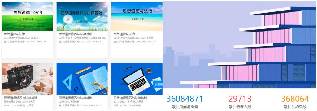 从2019年秋季学期开始,《思想道德与法治》课程教学团队每学期要求学生用抖音、秒拍、美拍等短视频拍摄软件创作“三分钟正能量”微视频。通过制作这类微视频提升学生的问题意识和思辨能力,是思政课教学“入脑”“入心”、实现与学生同频共振的有效尝试。同时,课程团队精心建设了《思想道德与法治》线上课程,开始全面落实混合式教学改革。2020年10月,线上课程在学银在线成功上线,免费对全国师生开放。自课程上线以来,先后有来自全国三十多所高校的学生选修了该线上课程。截止目前,《思想道德与法治》线上课程浏览量达三千六百多万,选课人数达两万九千多人,社会影响力逐年扩大。